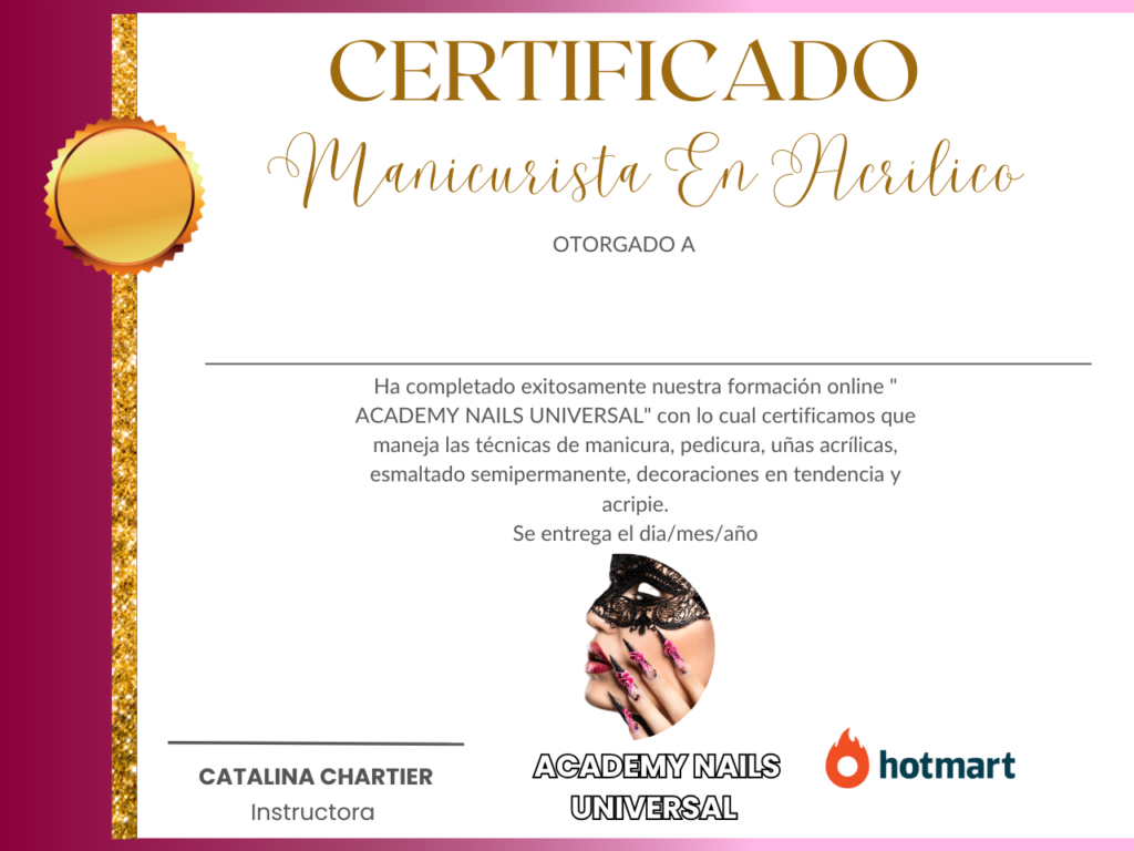✅Certificado personalizado descargable avalado por CATALINA CHARTIER Master Instructor (Fundadora del programa) y por la Plataforma Hotmart.